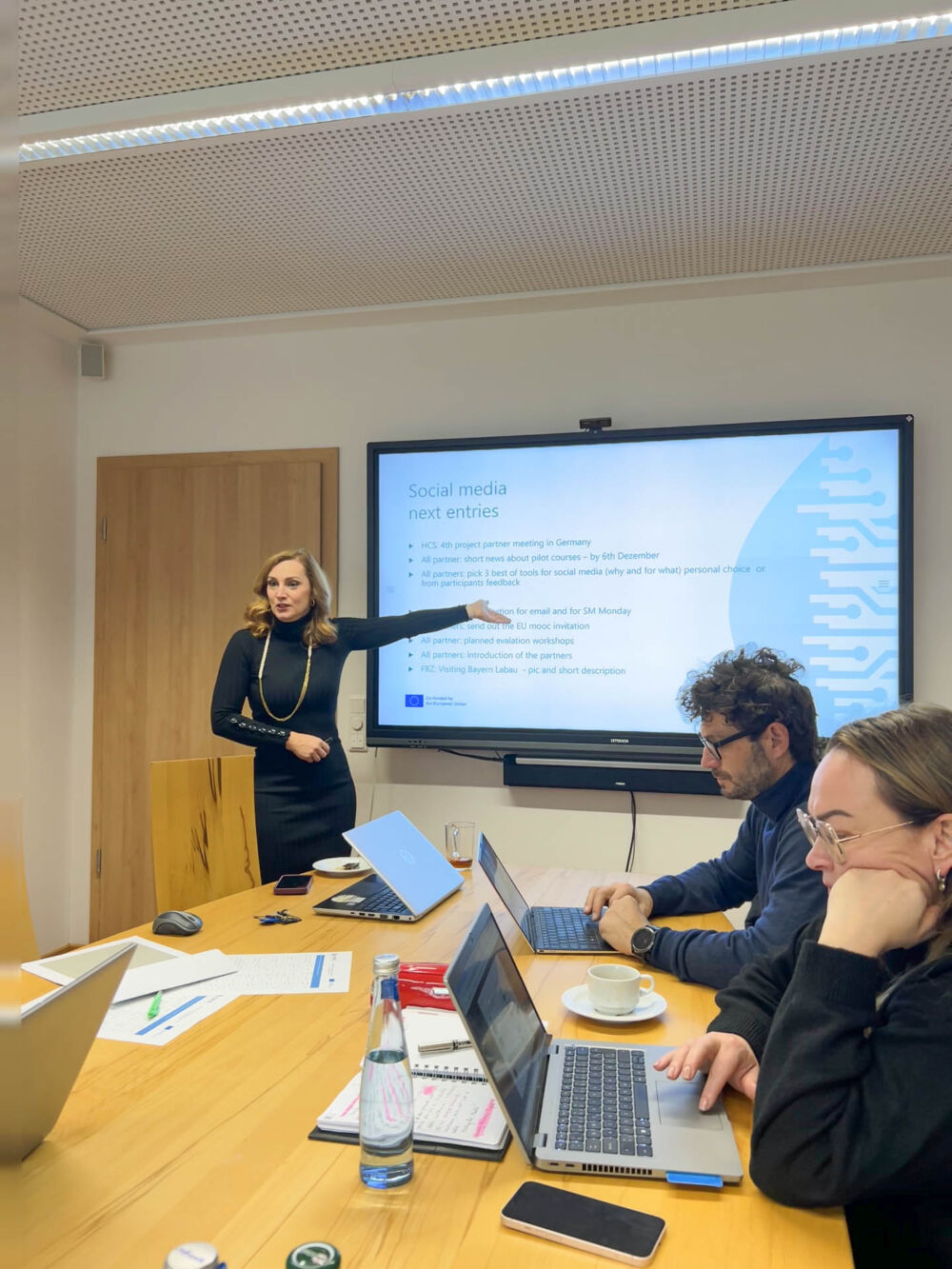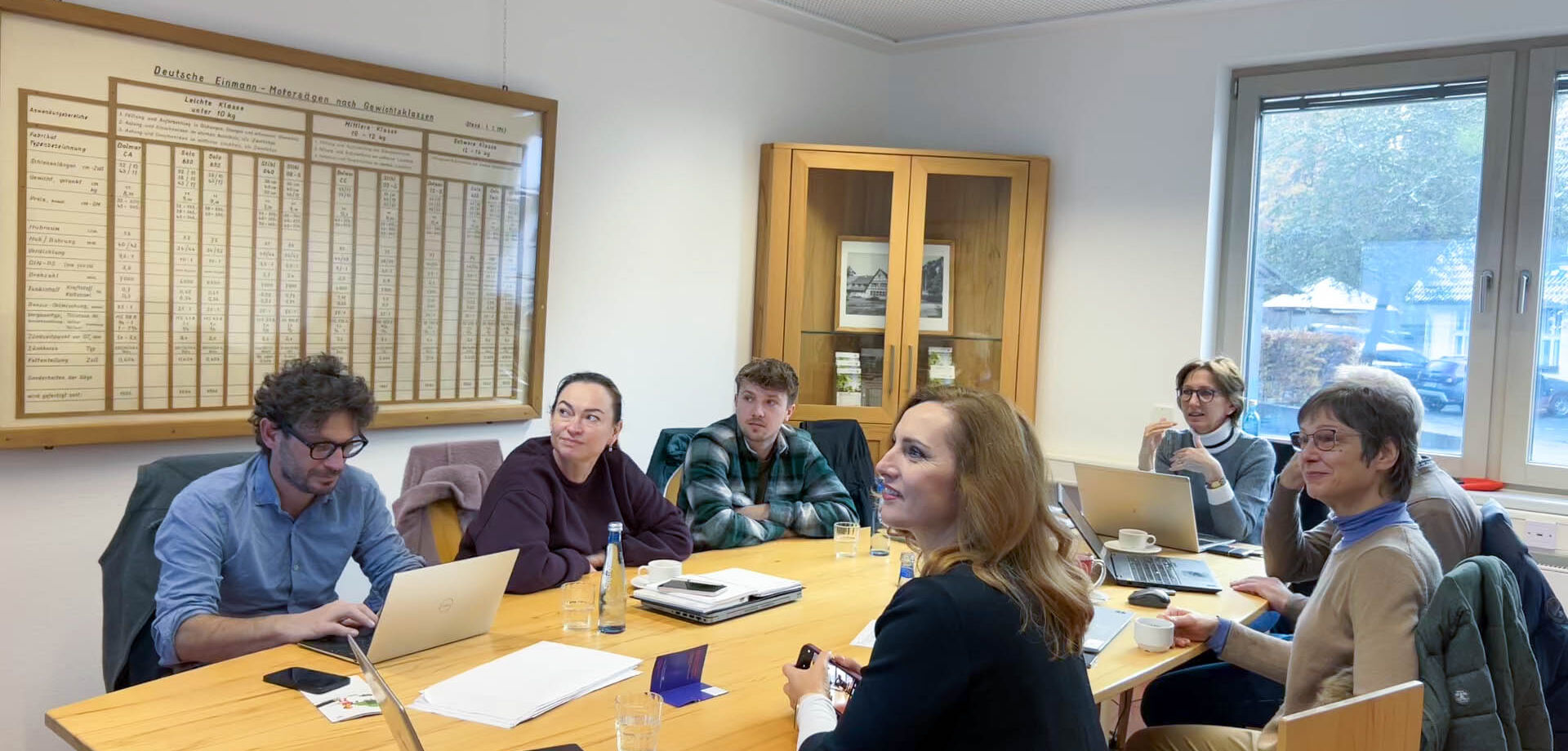 Projektmitglieder aus Österreich, Deutschland, Estland und Italien evaluierten während des zweitägigen Treffens die Ergebnisse der Kurse in ihren Ländern. Diese Evaluierungen verdeutlichten die Bedeutung solcher Angebote für die forstliche Ausbildung: Bis zu 56 Teilnehmer:innen aus 29 forstlichen Bildungseinrichtungen in Deutschland, Österreich und Südtirol nahmen an den Kursen teil. Sie nutzten die Gelegenheit, digitale Lernmedien kennenzulernen und deren gezielten Einsatz in der forstlichen Ausbildung mit den Referent:innen zu erproben.