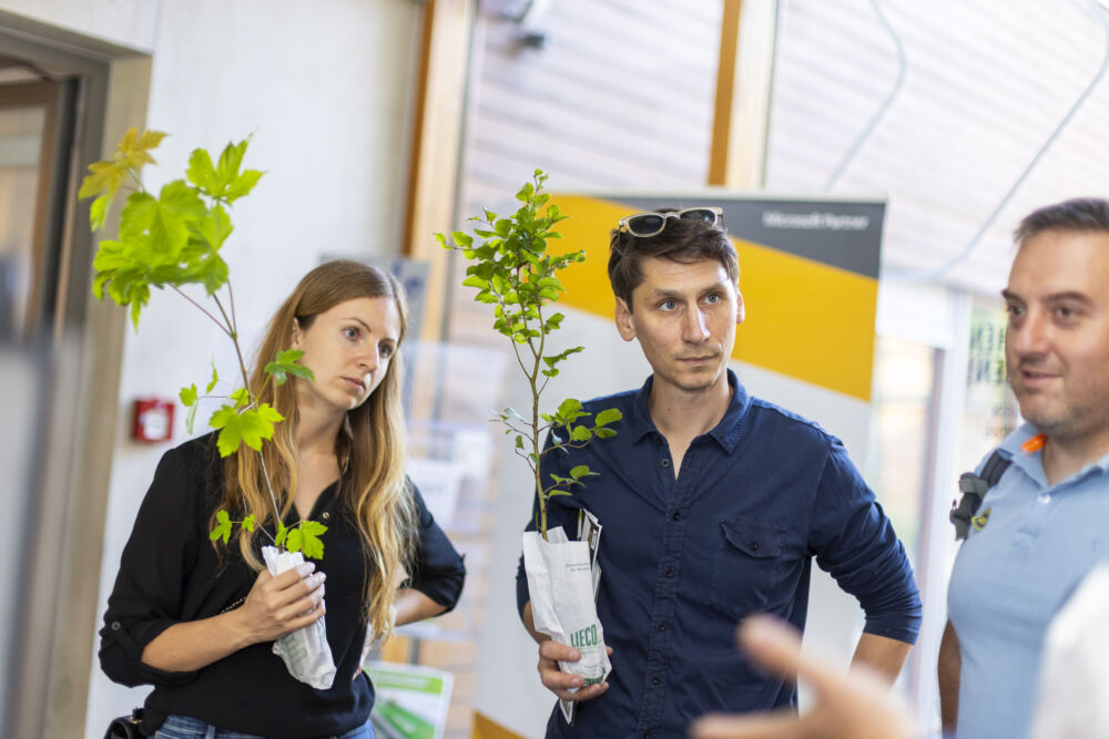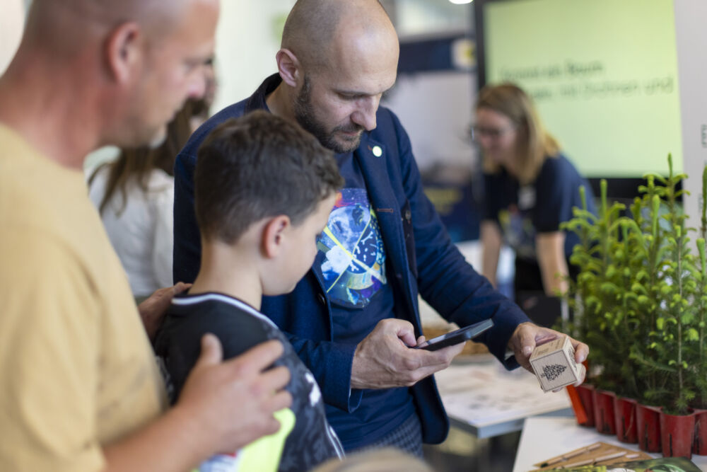 Alexander Pinter und Maike Sophie Rindler brachten den Besucher:innen unterschiedliche Baumarten und ihre ideale Nutzung zur Bewirtschaftung klimafitter Wälder näher. Getreu dem Motto „In der Zukunft verwurzelt“ informierten sie über die Vorteile der Nutzung smarter Technologien zur Aufforstung.