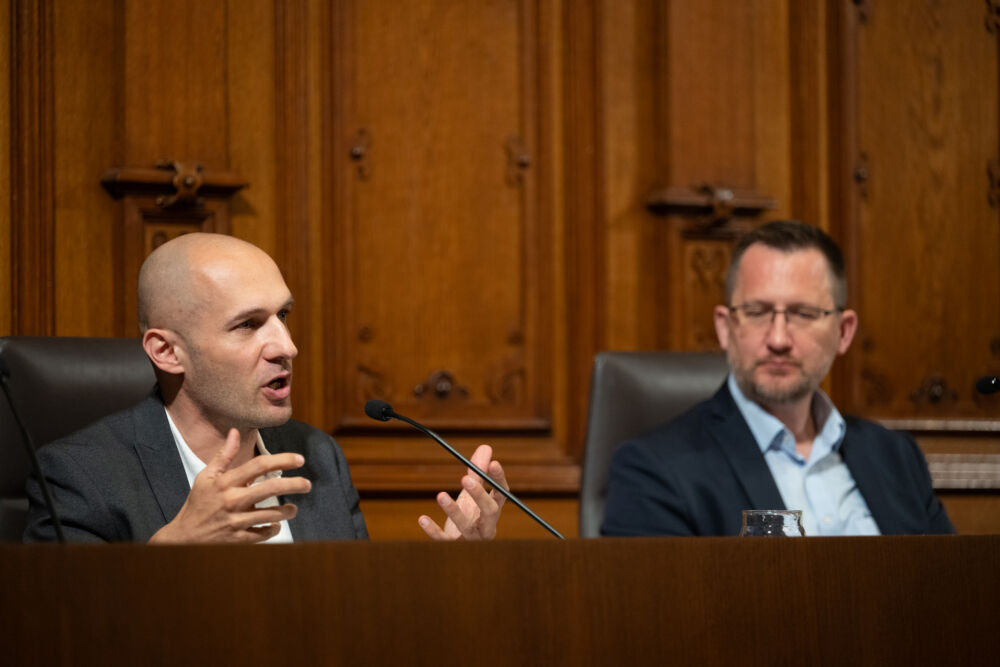 Ein besonderer Fokus lag auf den Möglichkeiten, die Holz im Bau eröffnet. Holzbau-Experte Erwin Thoma schilderte, warum es durchaus sinnvoll ist, Holz aus dem Wald zu entnehmen und zu verbauen. Da Holz als CO2-Speicher fungiert und als nachwachsender Rohstoff somit immer mehr Kohlenstoff binden kann, wenn wir ihn auch regelmäßig