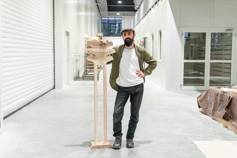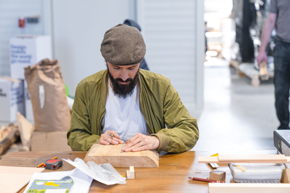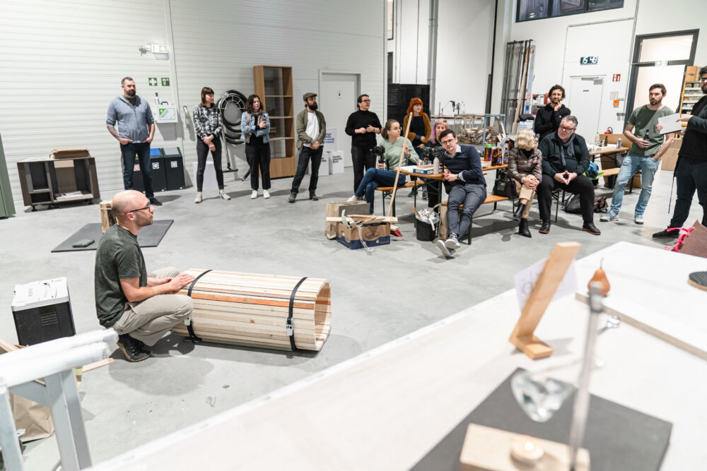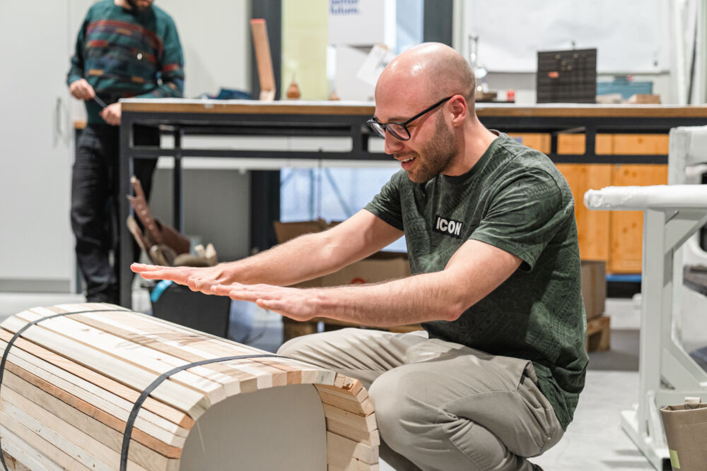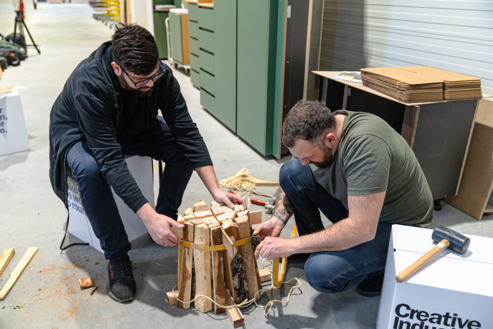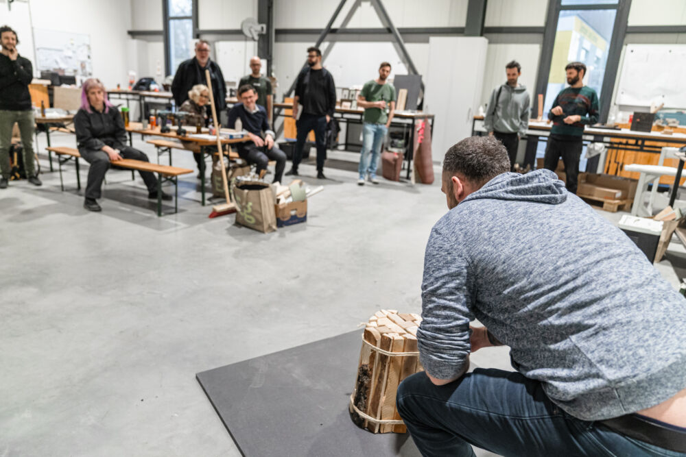 Welche Reststoffe fallen in der laufenden Produktion an und sind für neue Produkte geeignet? Zehn Designer:innen aus unterschiedlichen Bereichen wie Sustainability, Architektur oder Industrie- und Produktdesign, stellten sich gemeinsam mit den Tischlereien diese Frage. Die Produktideen, die dabei entstanden, sind nicht nur innovativ, sondern auch „heiß“ im wahrsten Sinne des Wortes. Bestes Beispiel: Der „Feuer/Hocker“, ein Hocker aus Brennholz, den man einfach als Basis für ein Lagerfeuer verwenden kann, sobald der Bedarf an einer Sitzmöglichkeit weg ist.